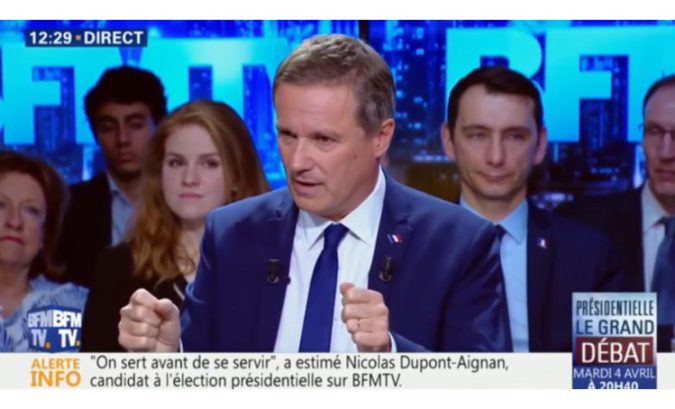 Le dimanche 2 avril 2017, Nicolas Dupont-Aignan, Président de Debout la France et candidat à l’élection présidentielle était l’invité de BFM Politique