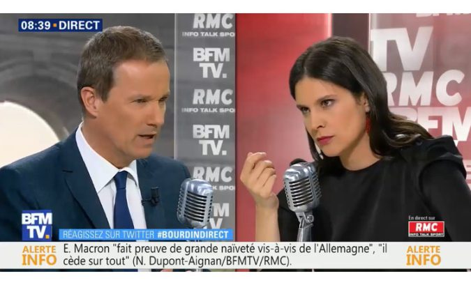 Le vendredi 11 mai 2018, Nicolas Dupont-Aignan député de l’Essonne et président de Debout la France était l’invité d’Apolline de Malherbe dans Bourdin Direct sur RMC/BFMTV.