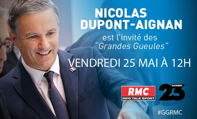 Nicolas Dupont-Aignan sera l’invité des Grande Gueules vendredi 25 mai à 12h. Réagissez sur les réseaux sociaux avec le hashtag #GGRMC !