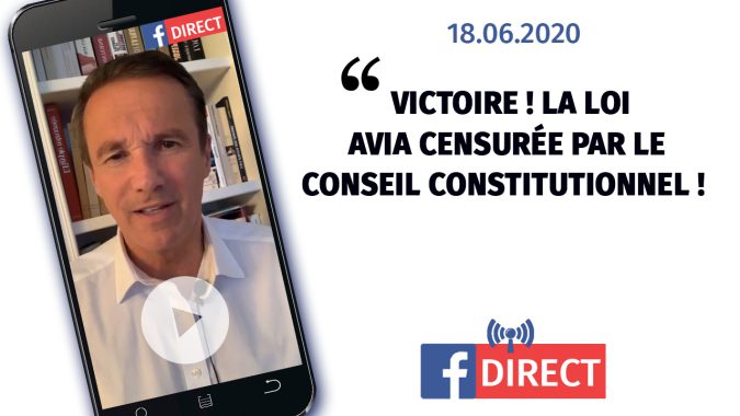 « Victoire ! La loi Avia qui accordait aux réseaux sociaux le pouvoir de supprimer arbitrairement des contenus, vient d’être censurée par le Conseil Constitutionnel ! Restons mobilisés, ne lâchons rien…