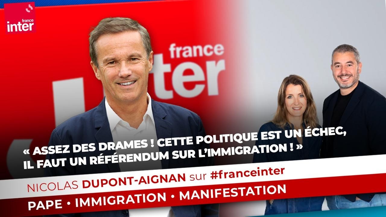 « Assez de drames ! Il faut un référendum sur l’immigration ! » · France Inter 23/09/23Vidéo24 septembre 2023Retrouvez l’intégralité de l’entretien de Nicolas DUPONT-AIGNAN ! Catégorie : VidéoPar Debout La France24 septembre 2023 Partager cet article Partager sur FacebookPartager sur Facebook Share on XPartager sur X Partager sur PinterestPartager sur Pinterest Partager sur LinkedInPartager sur LinkedIn Partager sur WhatsAppPartager sur WhatsApp Auteur : Debout La France https://debout-la-france.fr/ Précédent Article précédent :« Les Français veulent-ils accueillir 10 millions de migrants sur la prochaine décennie ? » · RTL, 24/09/23SuivantArticle suivant :Motion de censure • Européennes • Pouvoir d’achat – Les 4 Vérités, 30/09/23Articles liés« Macron est un danger public pour le pays ! » • Les Incorrectibles, 19/10/2519 octobre 2025« Seul un nouveau patriotisme peut sauver la France ! » · LCI, 19/10/2519 octobre 2025« Il y a un coup d’État européen, avec la complicité d’une classe politique minoritaire ! » · CNEWS, 12/10/2512 octobre 2025« Seule solution : la destitution ! » · LCI, 07/10/258 octobre 2025« Le gouvernement Lecornu est une provocation ! » · BFMTV, 05/10/257 octobre 2025« Ceux qui ont approché Macron sont en chute libre ! » · BFMTV, 30/09/20251 octobre 2025
