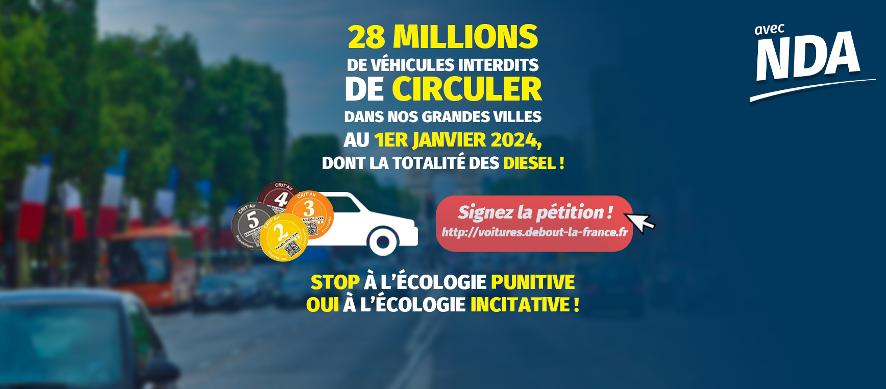 Contre l’interdiction de 28 millions de véhicules : signez la pétition !Actualités22 juin 2021 Catégorie : ActualitésPar Debout La France22 juin 2021 Partager cet article Partager sur FacebookPartager sur Facebook Share on XPartager sur X Partager sur PinterestPartager sur Pinterest Partager sur LinkedInPartager sur LinkedIn Partager sur WhatsAppPartager sur WhatsApp Auteur : Debout La France https://debout-la-france.fr/ Précédent Article précédent :Alexis Villepelet sur CNEWS (21/06/2021)SuivantArticle suivant :Alexis Villepelet sur CNEWS (22/06/2021)Articles liésRetrouver la souveraineté industrielle : le défi du XXIᵉ siècle15 octobre 20259 octobre, journée du handicap : et si on passait enfin aux actes ?8 octobre 2025Présidentielle 2027 : Jusqu’à 4,5 % d’intentions de vote pour Nicolas Dupont-Aignan !7 octobre 2025MAHA …ou inventer un modèle à la Française5 octobre 2025LIBERTÉ : Notre combat pour la Liberté3 octobre 2025Legrand–Cohen : quand les chiens de garde mordent la démocratie2 octobre 2025