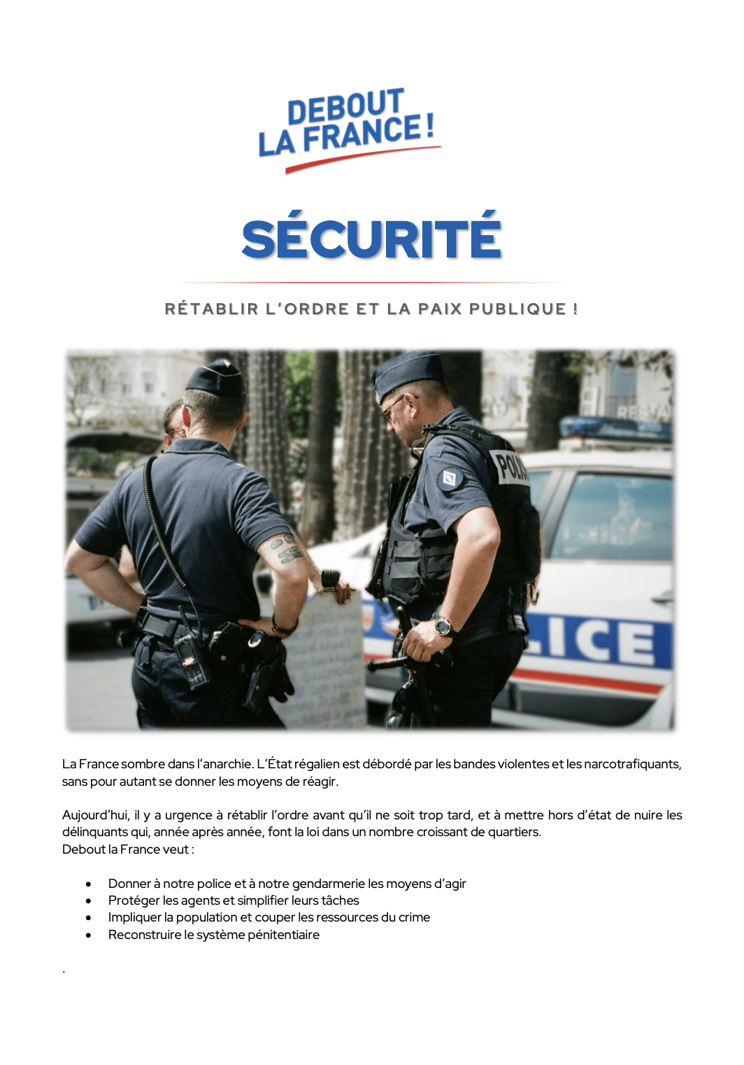Alors que la situation de la France se dégrade jour après jour, entre perte de souveraineté, insécurité croissante, recul de l’État et effondrement du pouvoir d’achat, Debout La France met à jour son programme en vue de l’élection présidentielle de 2027.