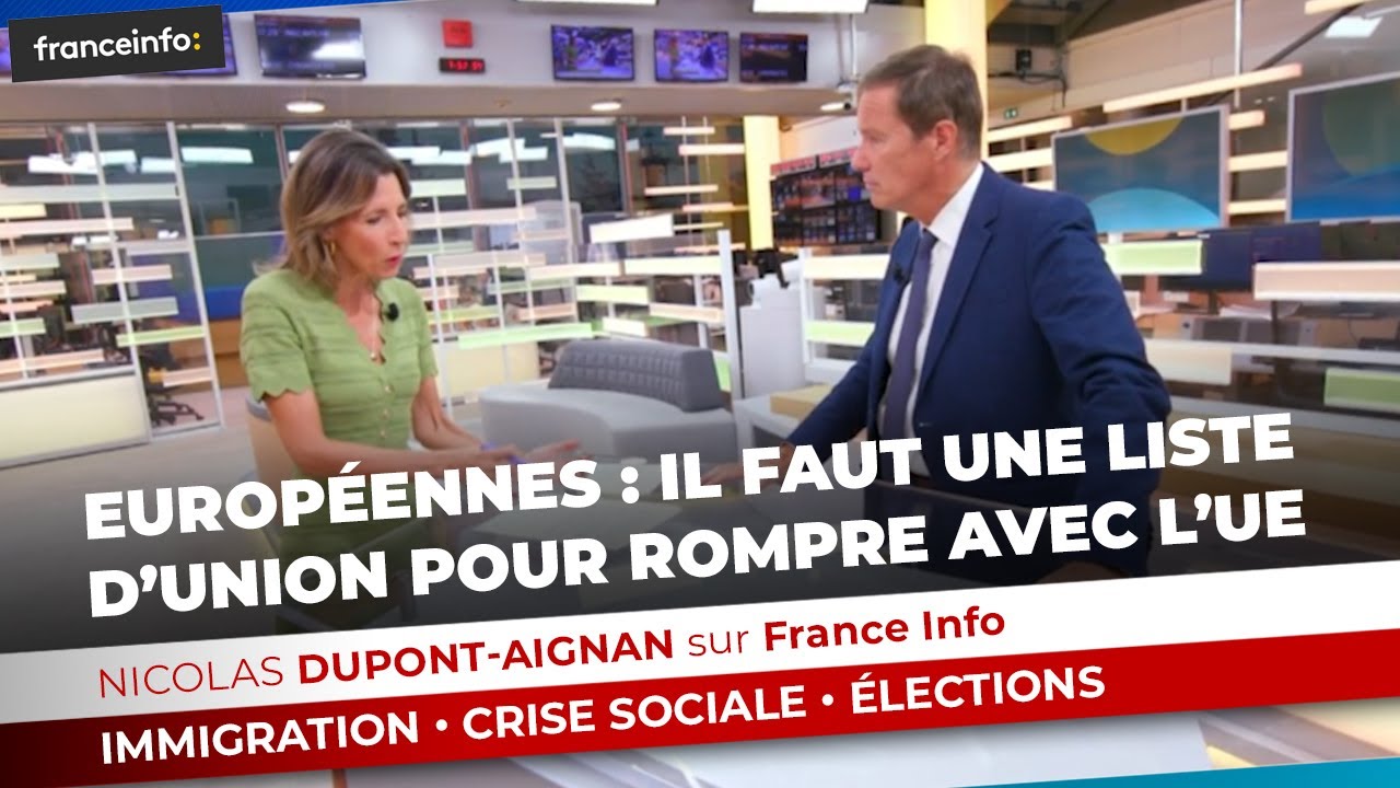 Immigration • Crise sociale • Européennes : N. Dupont-Aignan sur France Info • 02/10/23Vidéo3 octobre 2023Retrouvez l’intégralité de l’entretien de Nicolas DUPONT-AIGNAN ! Catégorie : VidéoPar Debout La France3 octobre 2023 Partager cet article Partager sur FacebookPartager sur Facebook Share on XPartager sur X Partager sur PinterestPartager sur Pinterest Partager sur LinkedInPartager sur LinkedIn Partager sur WhatsAppPartager sur WhatsApp Auteur : Debout La France https://debout-la-france.fr/ Précédent Article précédent :Table-ronde des universités de Rentrée : « Faut-il quitter l’UE pour sauver la France ? ».SuivantArticle suivant :L’Union européenne est morte en ArtsakhArticles liés« Macron est un danger public pour le pays ! » • Les Incorrectibles, 19/10/2519 octobre 2025« Seul un nouveau patriotisme peut sauver la France ! » · LCI, 19/10/2519 octobre 2025« Il y a un coup d’État européen, avec la complicité d’une classe politique minoritaire ! » · CNEWS, 12/10/2512 octobre 2025« Seule solution : la destitution ! » · LCI, 07/10/258 octobre 2025« Le gouvernement Lecornu est une provocation ! » · BFMTV, 05/10/257 octobre 2025« Ceux qui ont approché Macron sont en chute libre ! » · BFMTV, 30/09/20251 octobre 2025