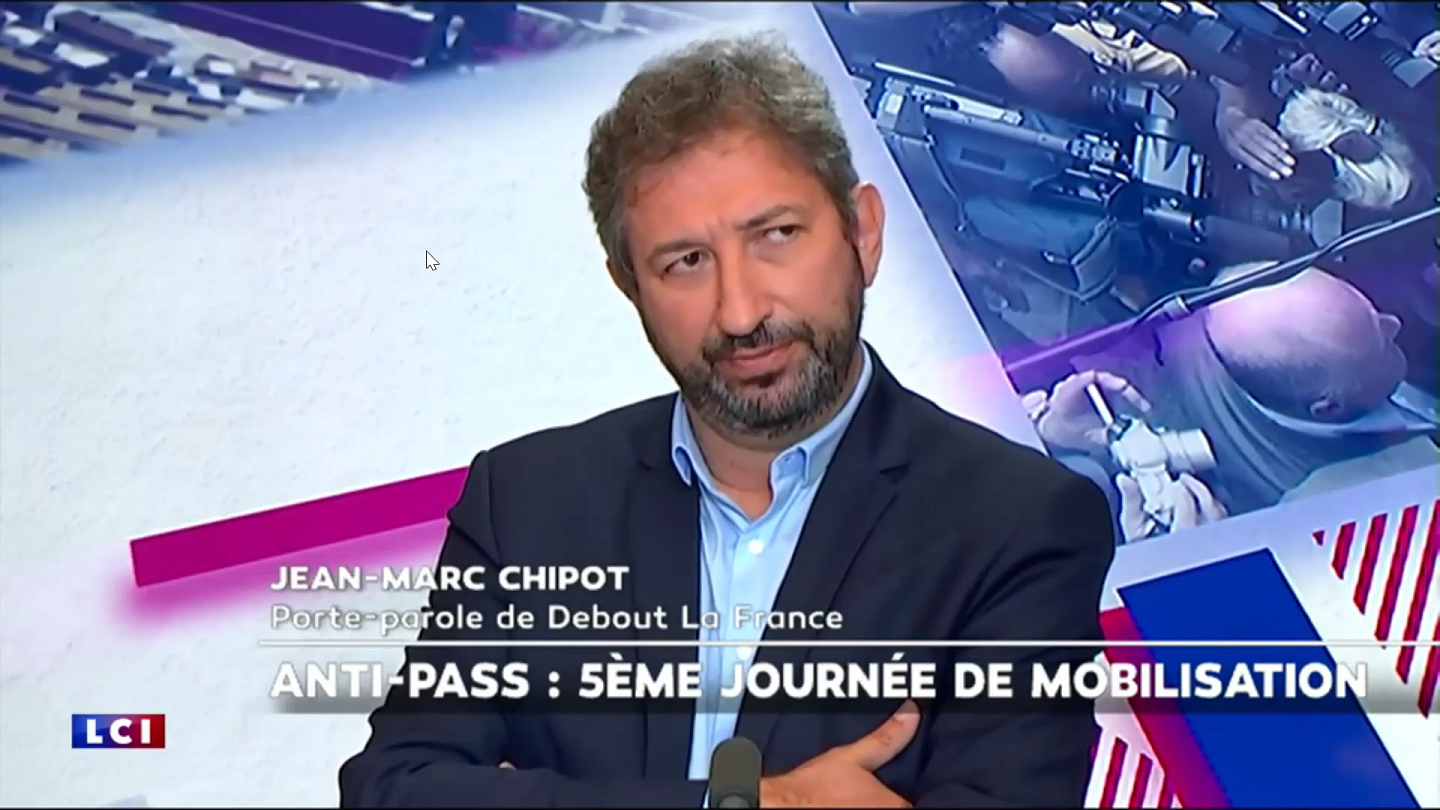 Jean-Marc Chipot sur LCI (14 août 2021)Actualités19 août 2021Samedi 14 août, Jean-Marc Chipot était invité sur LCI. Voir la vidéo Catégorie : ActualitésPar Ancien membre19 août 2021 Partager cet article Partager sur FacebookPartager sur Facebook Share on XPartager sur X Partager sur PinterestPartager sur Pinterest Partager sur LinkedInPartager sur LinkedIn Partager sur WhatsAppPartager sur WhatsApp Auteur : Ancien membre Précédent Article précédent :US GONE HOME !SuivantArticle suivant :Jean-Marc Chipot dans Midi News (CNews, 19 août 2021)Articles liésObligation vaccin grippe ou comment tuer notre système de santé25 novembre 2025La fin de nos opérateurs mobiles français pour des services américains ?23 novembre 2025Semaine européenne pour l’emploi des personnes handicapées (SEEPH).17 novembre 2025Victor Wembanyama, “l’Alien” : le Français qui fait trembler la NBA16 novembre 2025Très forte mobilisation pour la journée d’hommage au Général de Gaulle !10 novembre 2025Nicolas Dupont-Aignan au Salon du Made In France 20258 novembre 2025