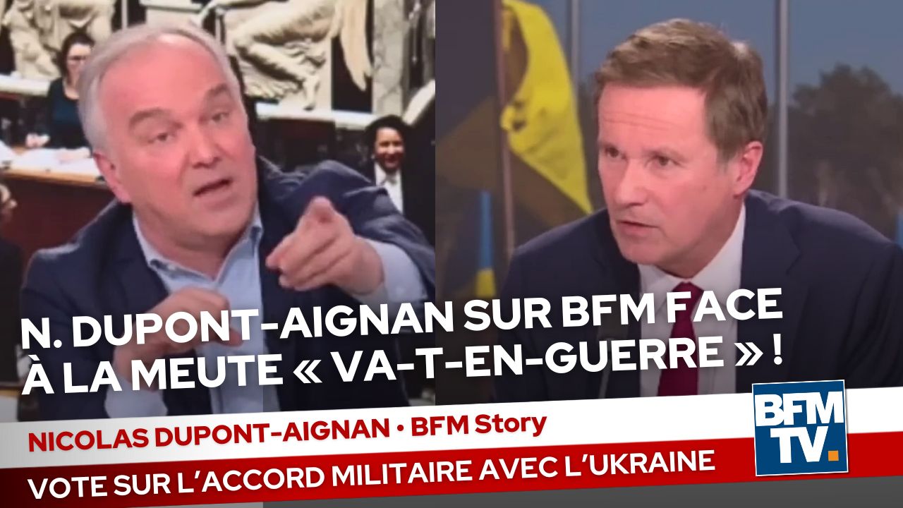 « Le président veut ruiner les Français dans une guerre sans fin ! » · BFMTV, 12/03/24Actualités12 mars 2024Retrouvez l’intégralité de l’entretien de Nicolas DUPONT-AIGNAN ! Catégorie : ActualitésPar Rédaction Debout la France12 mars 2024Étiquettes : NL5 Partager cet article Partager sur FacebookPartager sur Facebook Share on XPartager sur X Partager sur PinterestPartager sur Pinterest Partager sur LinkedInPartager sur LinkedIn Partager sur WhatsAppPartager sur WhatsApp Auteur : Rédaction Debout la France Précédent Article précédent :« Ukraine : derrière l’accord militaire, la guerre nucléaire ! » · TOCSIN, 12/03/24SuivantArticle suivant :« On passe d’un soutien à l’Ukraine à un conflit avec la Russie ! » • Public Sénat, 13/03/24Articles liésRetrouver la souveraineté industrielle : le défi du XXIᵉ siècle15 octobre 20259 octobre, journée du handicap : et si on passait enfin aux actes ?8 octobre 2025Présidentielle 2027 : Jusqu’à 4,5 % d’intentions de vote pour Nicolas Dupont-Aignan !7 octobre 2025MAHA …ou inventer un modèle à la Française5 octobre 2025LIBERTÉ : Notre combat pour la Liberté3 octobre 2025Legrand–Cohen : quand les chiens de garde mordent la démocratie2 octobre 2025