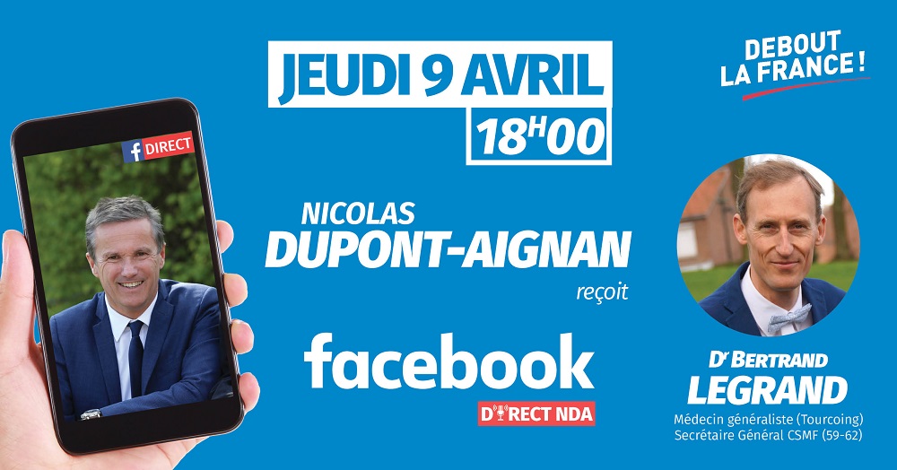 NDA et le Dr Bertrand Legrand débattent sur le Covid19Vidéo10 avril 2020Retrouvez la page Facebook du Dr Bertrand Legrand Catégorie : VidéoPar Nicolas Dupont-Aignan10 avril 2020Étiquettes : NDA Partager cet article Partager sur FacebookPartager sur Facebook Share on XPartager sur X Partager sur PinterestPartager sur Pinterest Partager sur LinkedInPartager sur LinkedIn Partager sur WhatsAppPartager sur WhatsApp Auteur : Nicolas Dupont-Aignan Président de Debout la France Précédent Article précédent :Rungis / Lettre à Edouard Philippe et Christophe CastanerSuivantArticle suivant :Avec Debout la France, je propose un plan d’urgence accessible aux entrepreneurs !Articles liés« Macron est un danger public pour le pays ! » • Les Incorrectibles, 19/10/2519 octobre 2025« Seul un nouveau patriotisme peut sauver la France ! » · LCI, 19/10/2519 octobre 2025« Il y a un coup d’État européen, avec la complicité d’une classe politique minoritaire ! » · CNEWS, 12/10/2512 octobre 2025« Seule solution : la destitution ! » · LCI, 07/10/258 octobre 2025« Le gouvernement Lecornu est une provocation ! » · BFMTV, 05/10/257 octobre 2025« Ceux qui ont approché Macron sont en chute libre ! » · BFMTV, 30/09/20251 octobre 2025