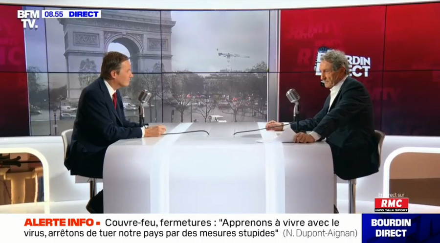 Nicolas Dupont-Aignan invité chez Bourdin (19 janvier 2021)Vidéo19 janvier 2021Voir la vidéo Catégorie : VidéoPar Debout La France19 janvier 2021 Partager cet article Partager sur FacebookPartager sur Facebook Share on XPartager sur X Partager sur PinterestPartager sur Pinterest Partager sur LinkedInPartager sur LinkedIn Partager sur WhatsAppPartager sur WhatsApp Auteur : Debout La France https://debout-la-france.fr/ Précédent Article précédent :Lettre ouverte aux restaurateursSuivantArticle suivant :Les personnes handicapées une nouvelle fois discriminéesArticles liés« Ukraine : Les dirigeants de l’UE sont des nains de jardin » · BFMTV, 24/11/2525 novembre 2025« On a un fou à la tête de l’État ! » · RMC, 21/11/2521 novembre 2025« La France est abandonnée par ses dirigeants. Ne nous laissons plus faire ! » · TF1, 11/11/2511 novembre 2025« Macron est un danger public pour le pays ! » • Les Incorrectibles, 19/10/2519 octobre 2025« Seul un nouveau patriotisme peut sauver la France ! » · LCI, 19/10/2519 octobre 2025« Il y a un coup d’État européen, avec la complicité d’une classe politique minoritaire ! » · CNEWS, 12/10/2512 octobre 2025
