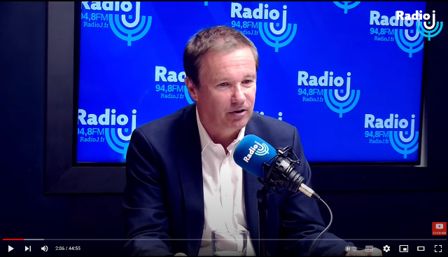Nicolas Dupont Aignan sur Radio J France 03/07/2022Vidéo4 juillet 2022 Catégorie : VidéoPar Nicolas Dupont-Aignan4 juillet 2022 Partager cet article Partager sur FacebookPartager sur Facebook Share on XPartager sur X Partager sur PinterestPartager sur Pinterest Partager sur LinkedInPartager sur LinkedIn Partager sur WhatsAppPartager sur WhatsApp Auteur : Nicolas Dupont-Aignan Président de Debout la France Précédent Article précédent :Nicolas DUPONT-AIGNAN sera sur Franceinfo le 7 Juillet à 7h50SuivantArticle suivant :Communiqué de presse de Nicolas DUPONT-AIGNAN : Réintégrons les soignants exclus et discriminés !Articles liés« Macron est un danger public pour le pays ! » • Les Incorrectibles, 19/10/2519 octobre 2025« Seul un nouveau patriotisme peut sauver la France ! » · LCI, 19/10/2519 octobre 2025« Il y a un coup d’État européen, avec la complicité d’une classe politique minoritaire ! » · CNEWS, 12/10/2512 octobre 2025« Seule solution : la destitution ! » · LCI, 07/10/258 octobre 2025« Le gouvernement Lecornu est une provocation ! » · BFMTV, 05/10/257 octobre 2025« Ceux qui ont approché Macron sont en chute libre ! » · BFMTV, 30/09/20251 octobre 2025