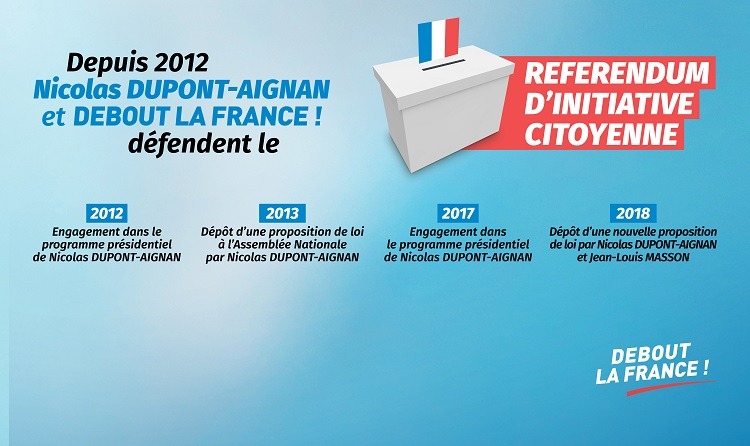 Depuis plusieurs années, le référendum d’initiative citoyenne est une proposition que défend Debout La France pour moderniser notre démocratie et rééquilibrer les pouvoirs dans la Vème République :