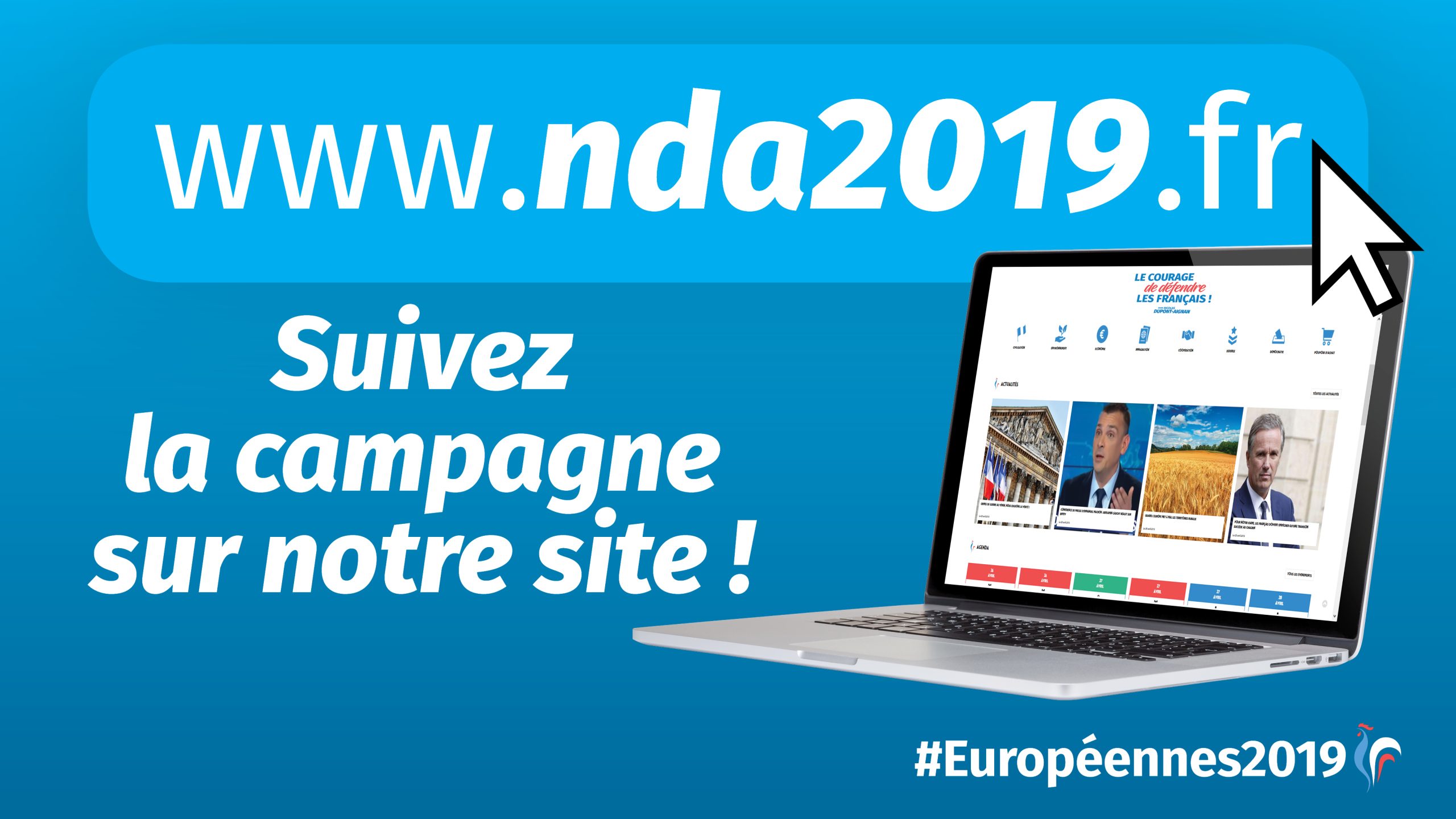Suivez notre campagne !Actualités26 avril 2019Agenda | Actu | Candidats | Déplacements Caravanes des territoires | #TourDeNosRégions Suivez l’actualité des Européennes sur notre site de campagne : http://nda2019.fr Catégorie : ActualitésPar Nicolas Dupont-Aignan26 avril 2019Étiquettes : NDA Partager cet article Partager sur FacebookPartager sur Facebook Share on XPartager sur X Partager sur PinterestPartager sur Pinterest Partager sur LinkedInPartager sur LinkedIn Partager sur WhatsAppPartager sur WhatsApp Auteur : Nicolas Dupont-Aignan Président de Debout la France Précédent Article précédent :Conférence de presse d’Emmanuel Macron : Benjamin Cauchy réagit sur BFMTVSuivantArticle suivant :Lettre de Nicolas Dupont-Aignan aux douaniersArticles liésLa fin de nos opérateurs mobiles français pour des services américains ?23 novembre 2025Semaine européenne pour l’emploi des personnes handicapées (SEEPH).17 novembre 2025Victor Wembanyama, “l’Alien” : le Français qui fait trembler la NBA16 novembre 2025Très forte mobilisation pour la journée d’hommage au Général de Gaulle !10 novembre 2025Nicolas Dupont-Aignan au Salon du Made In France 20258 novembre 2025Retrouver la souveraineté industrielle : le défi du XXIᵉ siècle15 octobre 2025