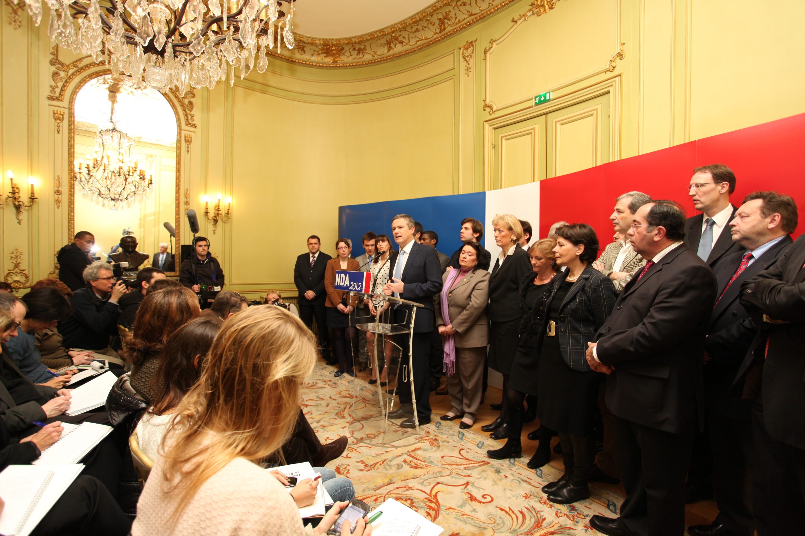Mardi 15 janvier, Nicolas Dupont-Aignan, entouré du Bureau national de DLR, a présenté ses vœux à la presse pour l'année 2013.