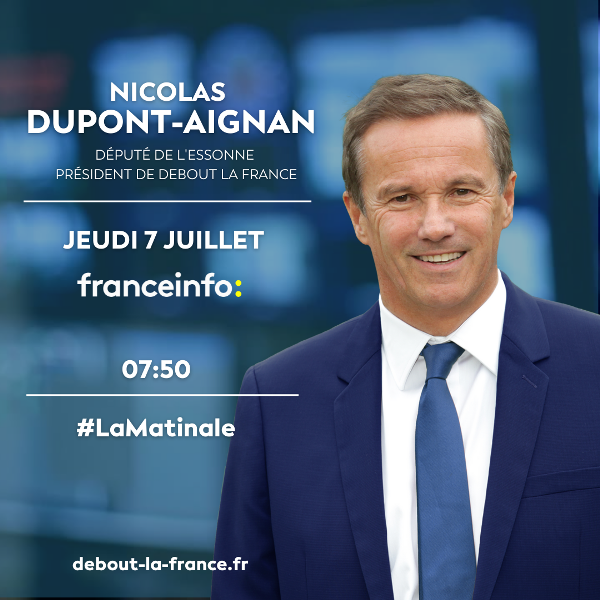 Retrouvez Nicolas Dupont-Aignan, Président de Debout La France sur CNEWS lundi 30 mai à 8h15.