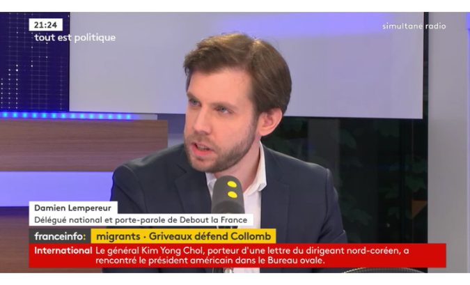 Le vendredi 1 juin 2018, Damien Lempereur porte-parole de Debout la France était l’invité du débat de « Tout est Politique » Sur France Info