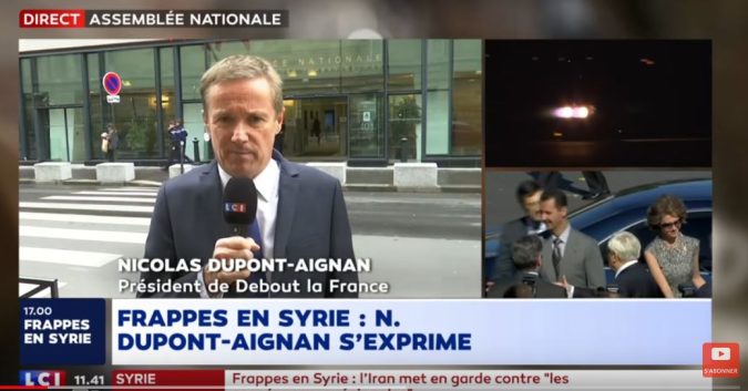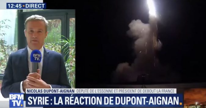 Dimanche 15 avril 2018, au lendemain de l’intervention militaire en Syrie, réaction de Nicolas Dupont-Aignan, député de l’Essonne et président de Debout La France en direct sur Sud Radio.