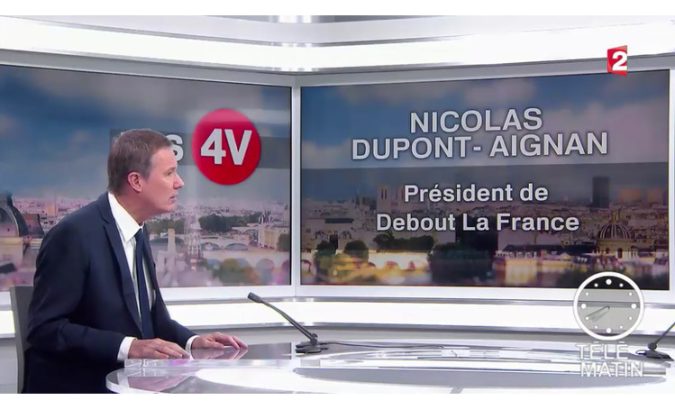 Le vendredi 5 janvier 2018, Nicolas Dupont-Aignan député de l’Essonne et président de Debout la France était l’invité des 4 Vérités sur France 2