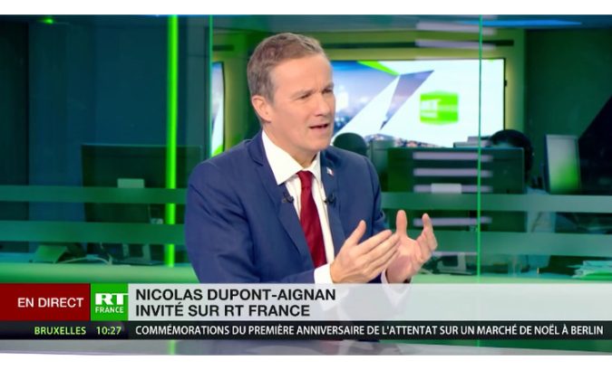 Le mardi 19 décembre 2017, Nicolas Dupont-Aignan député de l’Essonne et président de Debout la France était l’invité politique de RT France