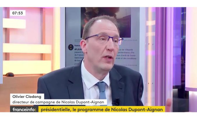 Le jeudi 13 avril 2017, Olivier Clodong directeur de campagne de Nicolas Dupont-Aignan, était l’invité de France Info tv.