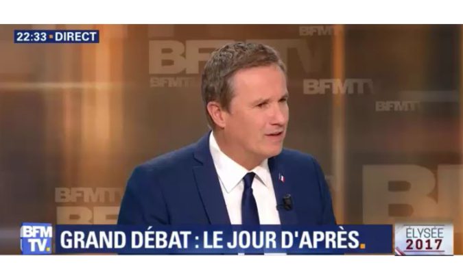 Le mercredi 5 avril 2017, Nicolas Dupont-Aignan, Président de Debout la France et candidat à l’élection présidentielle était l’invité du Grand Angle sur BFMTV
