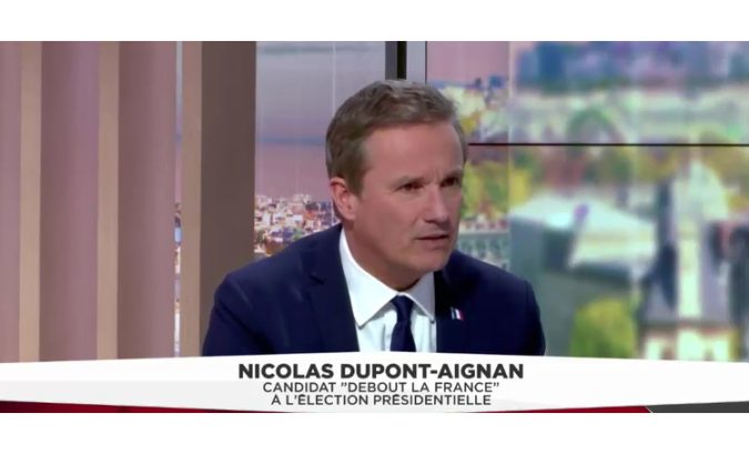 Le vendredi 7 avril 2017, Nicolas Dupont-Aignan, Président de Debout la France et candidat à l’élection présidentielle était l’invité de « Objectif Elysée » sur LCI