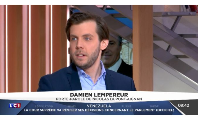 Le vendredi 31 mars 2017, Laurent Jacobelli, secrétaire général adjoint de Debout la France et porte parole de Nicolas Dupont-Aignan était l’invité de LCI Midi