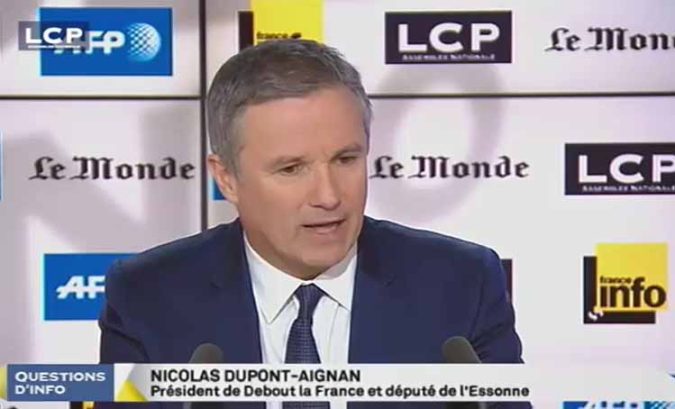 Le mercredi 17 février 2016, Nicolas Dupont-Aignan Député de l’Essonne et Président de Debout la France était l’invité de Frederic Haziza dans Questions d’Info sur LCP