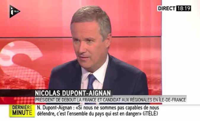Le mercredi 25 novembre 2015, Nicolas Dupont-Aignan Président de Debout la France et tête de liste « Île-de-France » aux Elections Régionales 2015 était l’invité du journal d’Itélé présenté par Laurence Ferrari