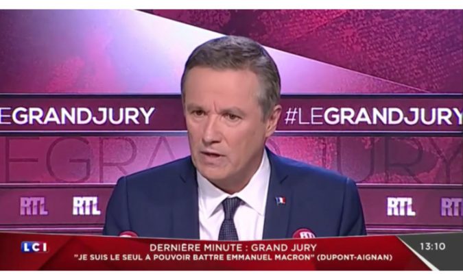 Le dimanche 12 mars 2017, Nicolas Dupont-Aignan, président de Debout la France et candidat à l’élection présidentielle était l’invité du Grand Jury RTL – LCI