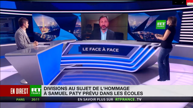 Retrouvez Jean-Marc Chipot au micro de Stéphanie de Muru sur RT France face au porte-parole de Fabien Roussel et des Jeunesses communistes, Léon Deffontaines au sujet de l’hommage à Samuel…