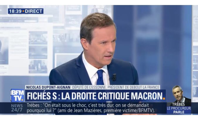 Le Lundi 26 mars 2018, Nicolas Dupont-Aignan député de l’Essonne et président de Debout la France était l’invité d’Olivier Truchot dans BFM Story
