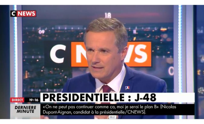 Le lundi 6 mars 2017, Nicolas Dupont-Aignan, président de Debout la France et candidat à l’élection présidentielle était l’invité de Laurence Ferrari sur C News