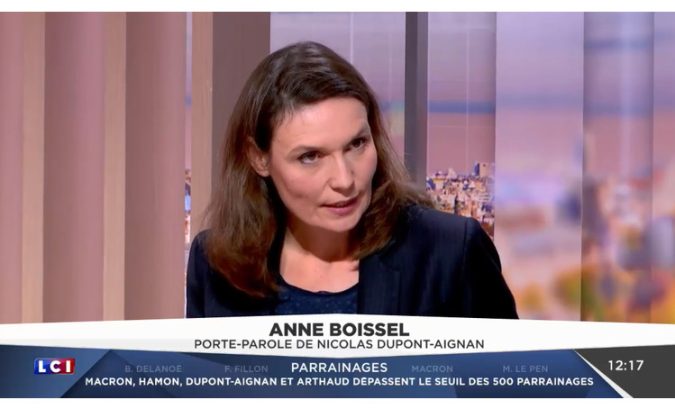 Le mercredi 8 mars 2017, Anne Boissel, Vice-Présidente de Debout la France et porte-parole de Nicolas Dupont-Aignan était l’invitée du focus de LCI Midi