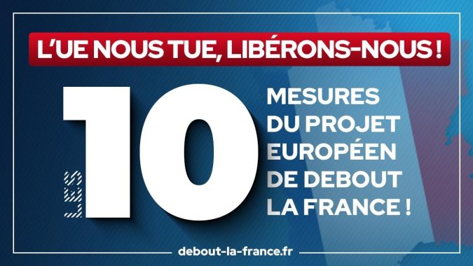 Découvrez les 10 mesures du projet européen de Debout la France ! Rétablir nos frontières nationales en sortant de l’espace Schengen. Supprimer la Commission européenne et la Cour de justice…