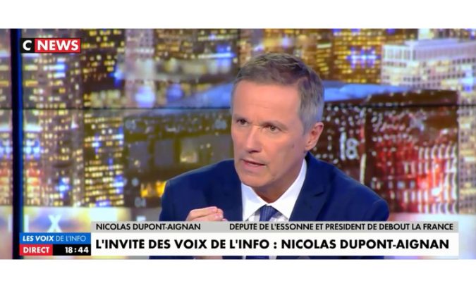 Le mardi 14 novembre 2017, Nicolas Dupont-Aignan député de l’Essonne et président de Debout la France était l’invité de Sonia Mabrouk dans « Les voix de l’Info » sur C News